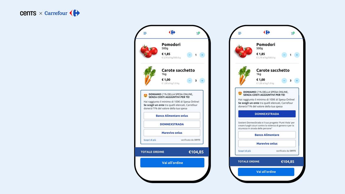 Grazie alla sinergia tecnologica con Cents i clienti possono scegliere se destinare l’1% dell’importo del carrello, donato direttamente da Carrefour