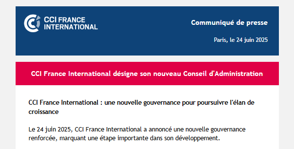 Il 24 giugno 2025, CCI France International ha annunciato una nuova governance rafforzata, segnando una tappa importante nel suo sviluppo.