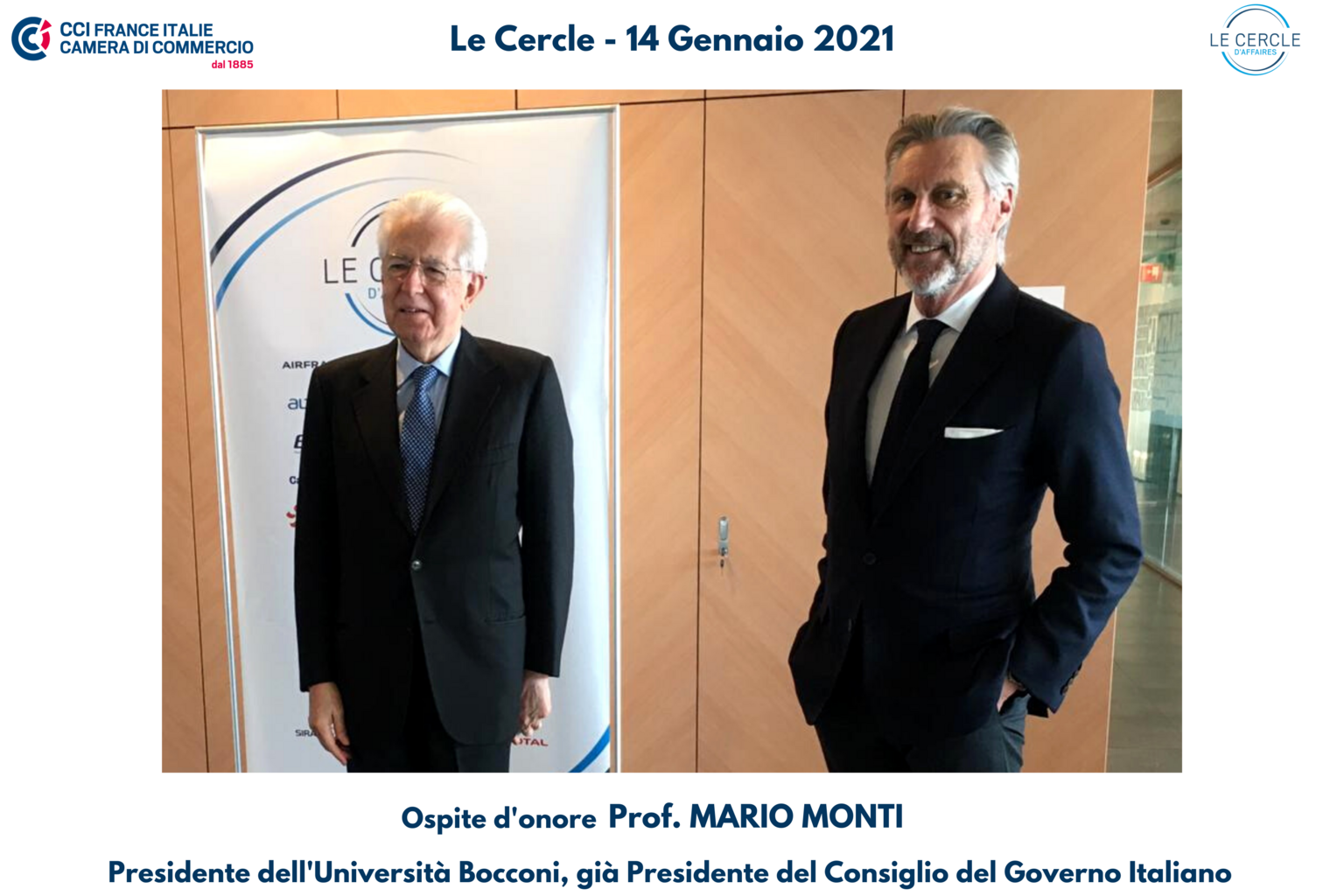 Prof. Mario Monti, Presidente dell'Università Bocconi, già Presidente del Consiglio del Governo Italiano è intervenuto all'incontro del Cercle della Chambre tenutosi in streaming, per condividere insieme a Presidenti e Amministratori Delegati di grandi gruppi della comunità d'affari franco-italiana la sua visione sul futuro dell'Unione Europea dopo Trump.