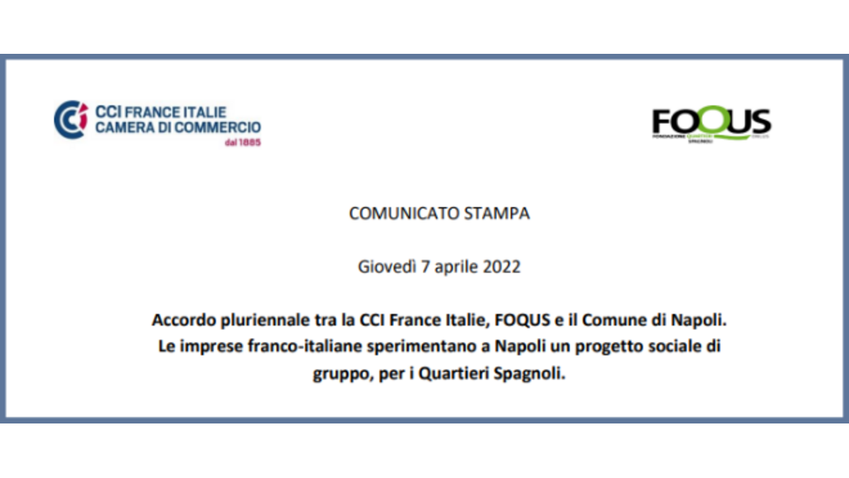 Comunicato Stampa - Accordo pluriennale tra la CCI France Italie, FOQUS e il Comune di Napoli