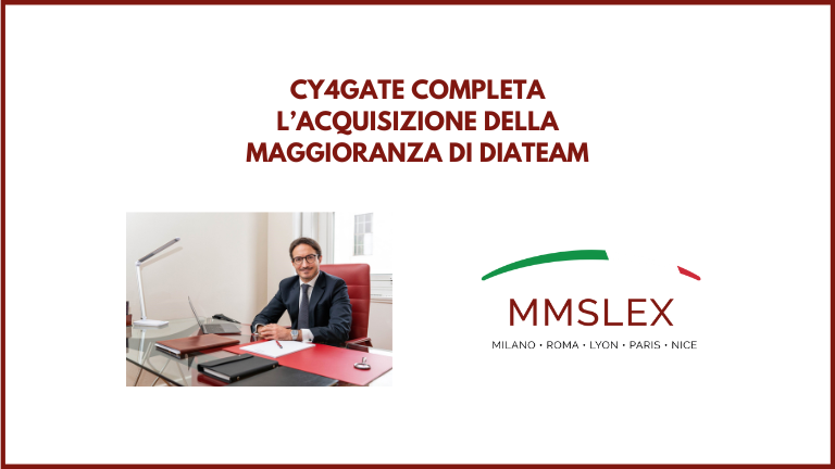 COMUNICATO STAMPA OPERAZIONE M&A STUDIO LEGALE MMSLEX - CY4GATE completa l’acquisizione della maggioranza di DIATEAM