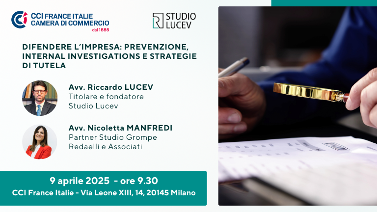 Durante l’evento tenutosi presso gli uffici Chambre, gli interventi dell’Avv. Lucev e dell’Avv. Manfredi hanno offerto due prospettive complementari sul ruolo delle investigazioni interne nella difesa dell’impresa.