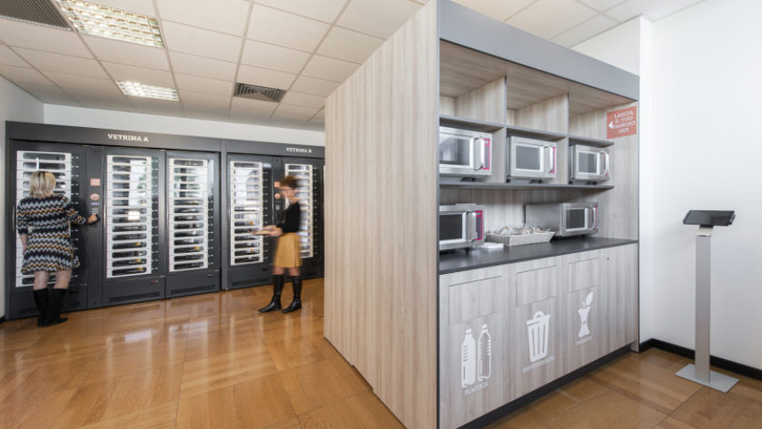 FOOD360 è il sistema Elior per la ristorazione aziendale in modalità self- service con prenotazione, disponibile per tutta la giornata lavorativa. Consiste in una vetrina refrigerata intelligente, che permette di mantenere i piatti pronti alla corretta temperatura, in attesa che vengano ritirati dagli utenti. Il dipendente – attraverso un’app dedicata accessibile da desktop e mobile – sceglie e prenota con 24 ore di anticipo il pasto che desidera consumare il giorno successivo. Al momento del pranzo, all’ora desiderata, si reca presso le vetrine refrigerate di FOOD360 e ritira il pasto autonomamente dalla vetrina self-service in un kit monouso, rigenerando il piatto negli speciali microonde integrati in FOOD360.