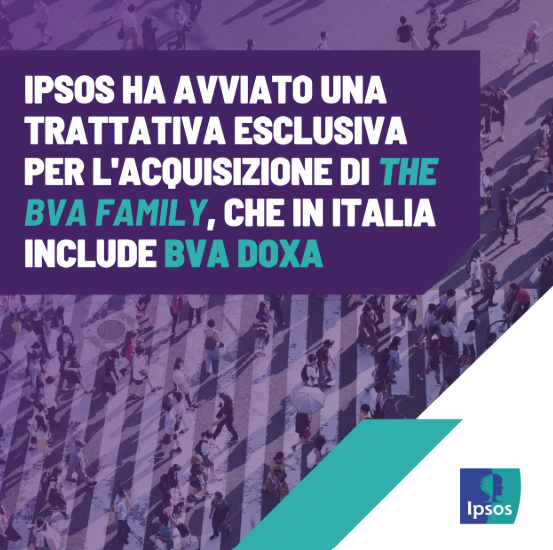 Ipsos annuncia di aver avviato una trattativa esclusiva per l'acquisizione di The BVA Family, che in Italia include BVA Doxa.
