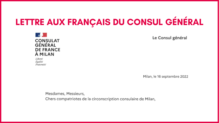 In allegato la lettera che il Console Generale di Francia a Milano indirizza ai Francesi della circoscrizione, datata 16 settembre 2022.