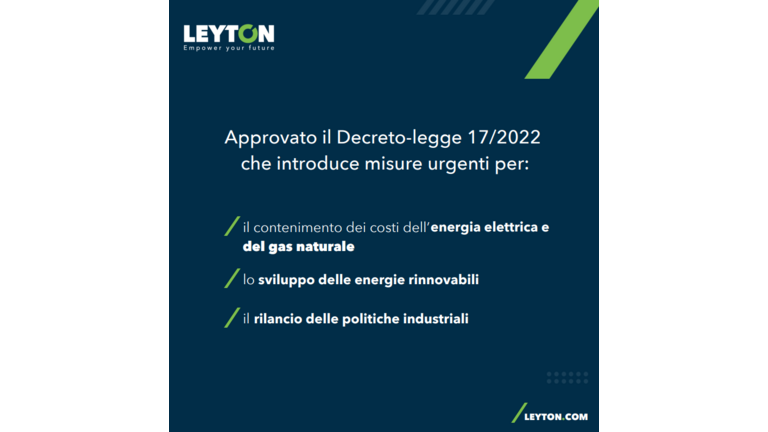 Il Decreto-Legge 17/2022 stabilisce diverse misure volte a favorire anche la transizione verde e l'efficienza energetica nelle Imprese