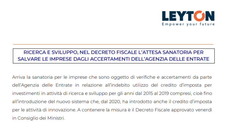 Arriva la sanatoria per le imprese che sono oggetto di verifiche e accertamenti da parte dell'Agenzia delle Entrate