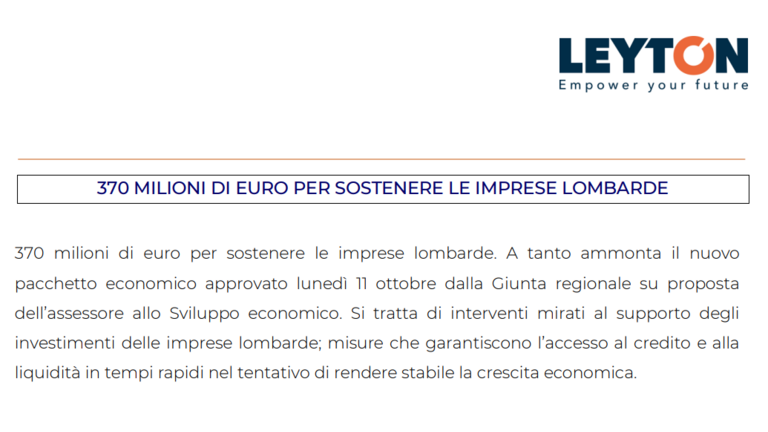 A tanto ammonta il nuovo pacchetto economico approvato lunedì 11 ottobre dalla Giunta regionale su proposta dell’assessore allo Sviluppo economico.