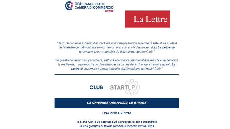 12 Novembre 2020 Un evento eccezionale della Camera di Commercio francese in Italia GIORNATA B2B dedicata a GRANDI AZIENDE e STARTUP 215 1 to 1…