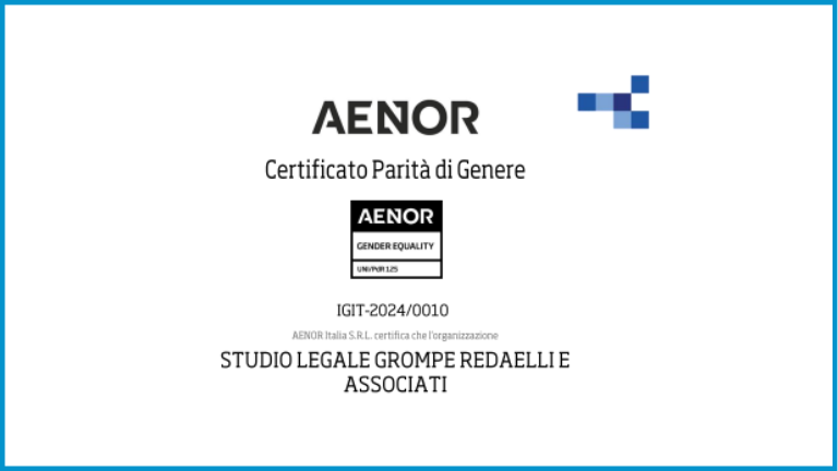 Lo Studio Legale Grompe Redaelli e Associati ha ottenuto la certificazione di parità di genere UNI PdR 125:2022