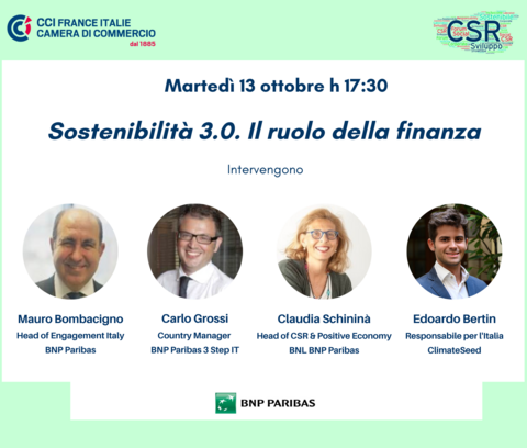 "Sostenibilità 3.0. Il ruolo della finanza" In collaborazione con BNP Paribas