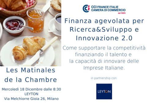Ultimo appuntamento dell'anno con i Matinales de la Chambre - Finanza agevolata per R&S e Innovazione 2.0