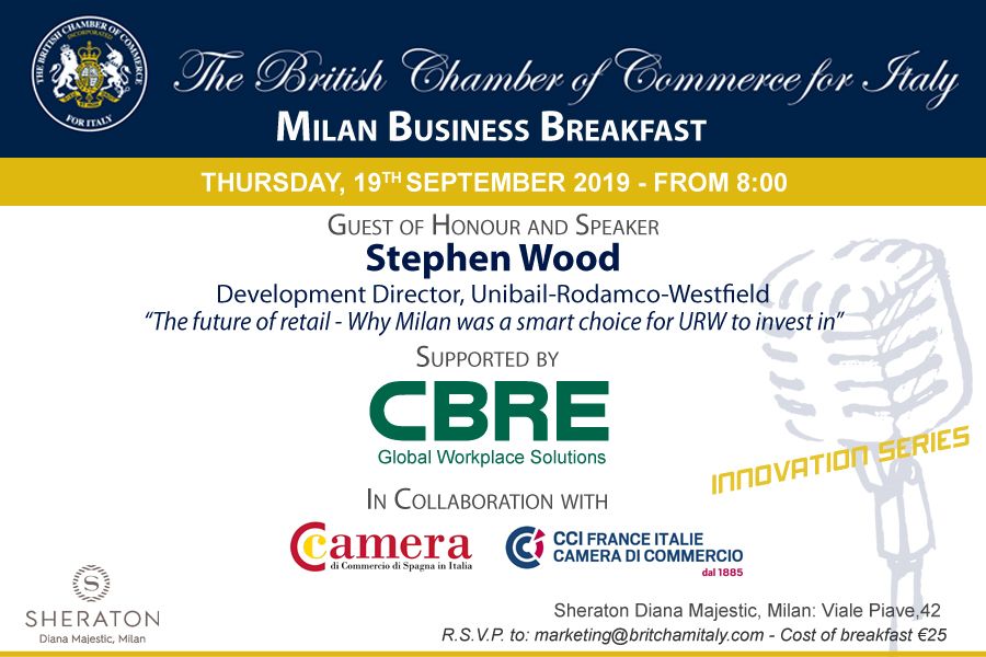 Giovedì 19 settembre 2019 dalle 8.00 alle 10.00, presso lo Sheraton Diana Majestic, Milano