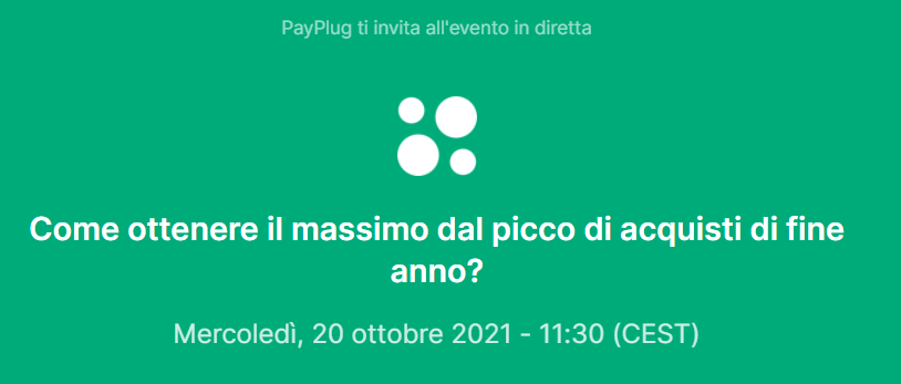 Mercoledì 20 ottobre alle 11:30 gli esperti di PayPlug e di isendu ti mostreranno come sfruttare al meglio il periodo di fine anno e preparare il tuo e-commerce a: