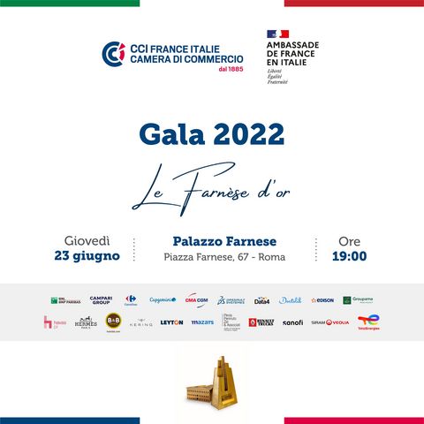 A coronamento di un anno eccezionale per le relazioni franco italiane la CCI France Italie ha organizzato il Gala - LeFarnèse d’Orche si terrà a Roma, il prossimo 23 giugno presso Palazzo Farnese, sede dell’Ambasciata di Francia.