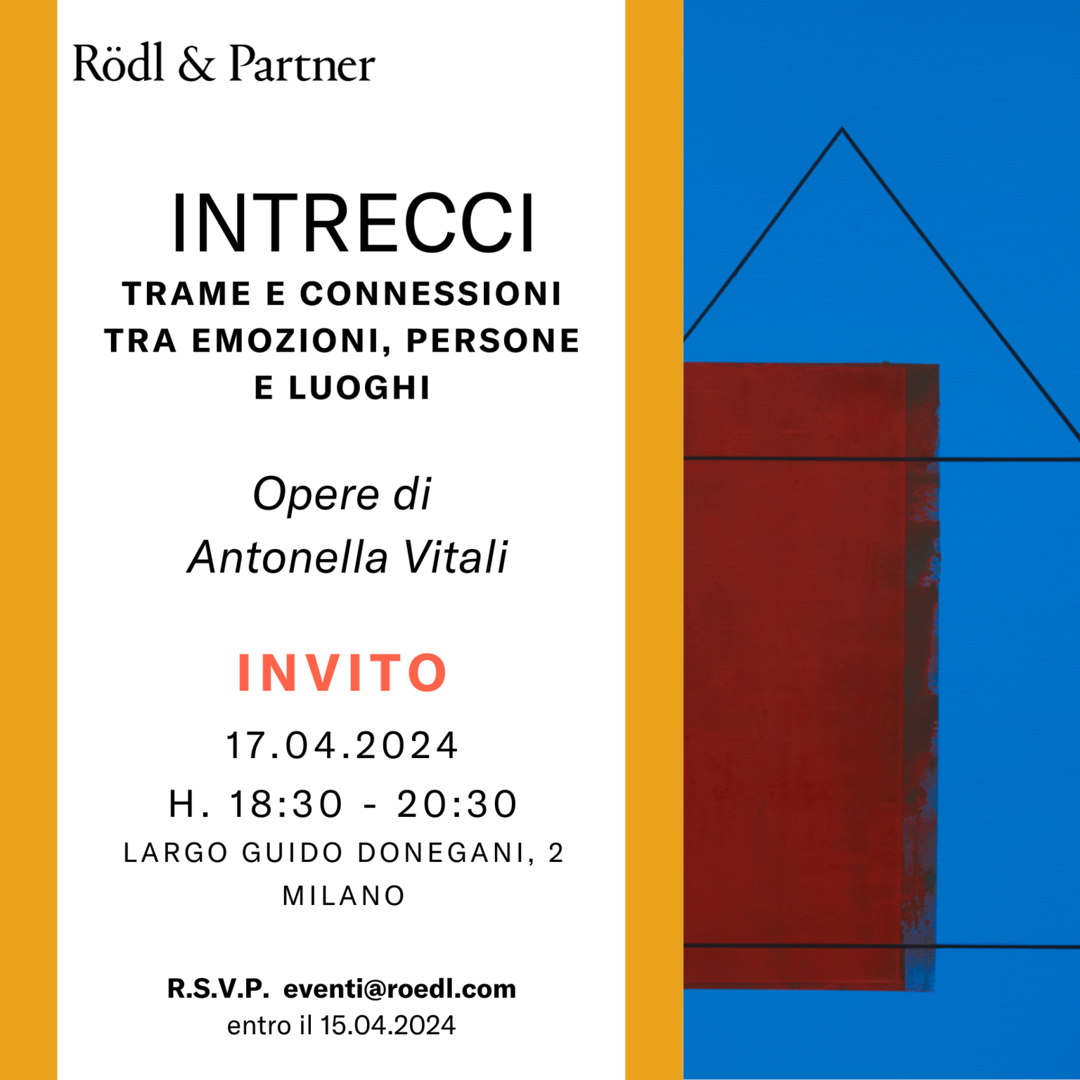 Per poter partecipare all’inaugurazione della mostra d’arte ospitata dallo studio Rödl & Partner, RSVP entro il 15.04a Barbara Galleri +39 02 6328 841 | eventi(@)roedl.com