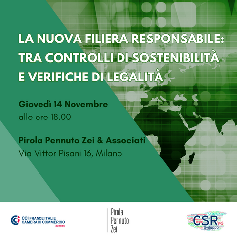 La CCI France Italie ti invita alla tavola rotonda organizzata in collaborazione con Pirola Pennuto Zei & Associati, nell'ambito del Club CSR