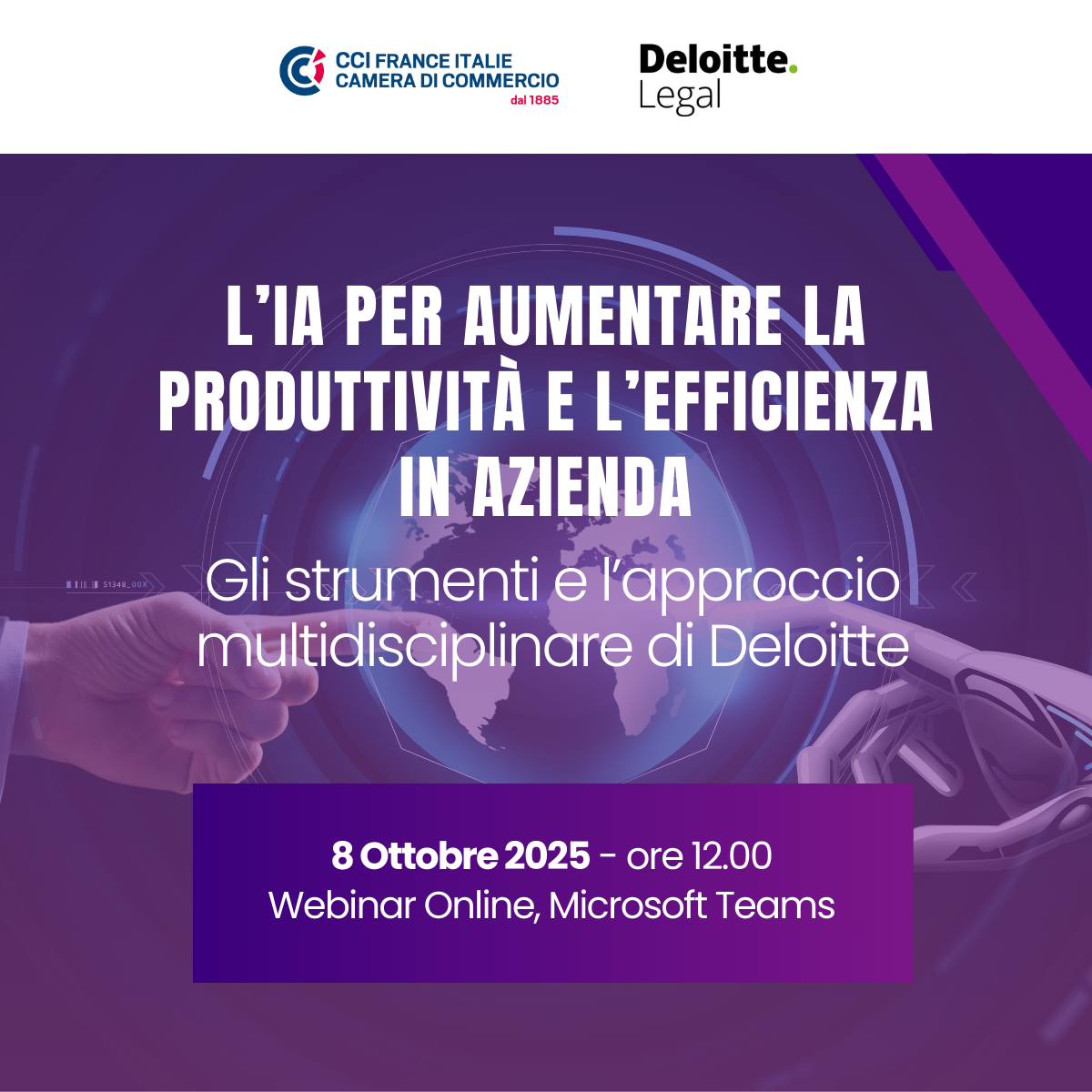 Il webinar offrirà una prospettiva integrata per mostrare le potenzialità tecnologiche dell'intelligenza artificiale e come tradurle in strategie operative per le imprese. Durante l'appuntamento Deloitte condividerà un valido supporto per affrontare vincoli normativi e rischi di compliance.