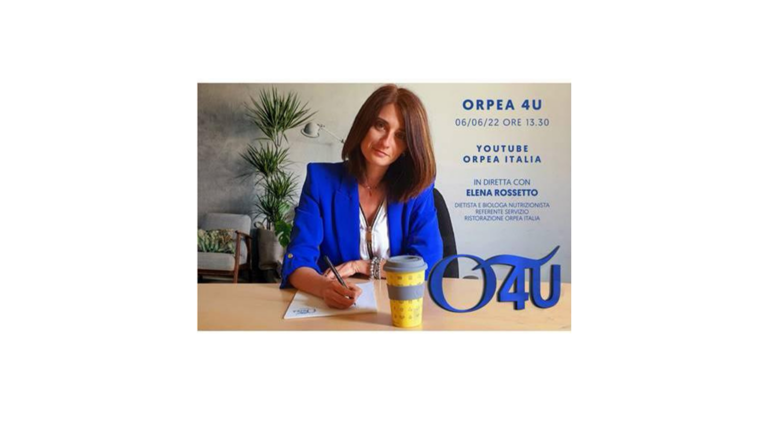 Lunedì 6 Giugno alle 13:00 si svolgerà il webinar in streaming: 20 minuti di diretta in compagnia di Elena Rossetto - dietista e biologa nutrizionista, sul canale YouTube Orpea Italia.