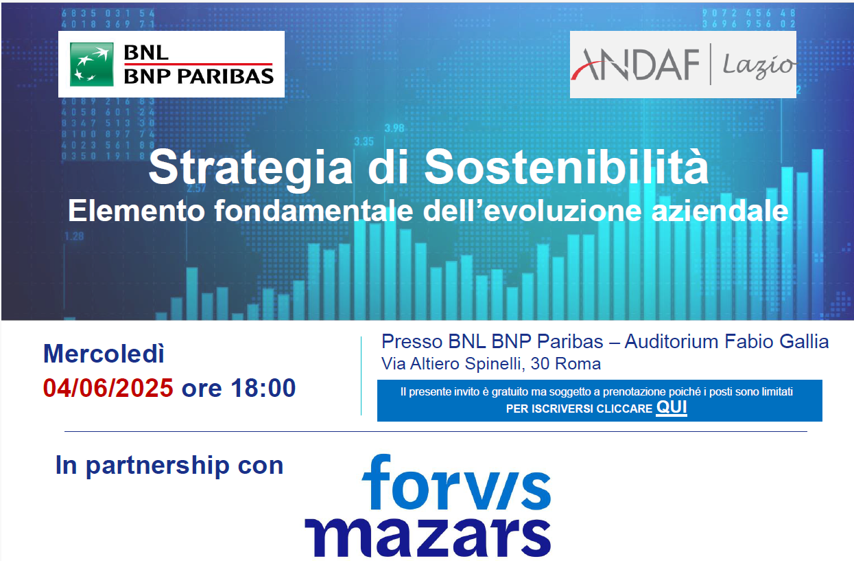 Forvis Mazars, in collaborazione con BNL BNP Paribas e ANDAF Lazio, organizza un evento dedicato alle strategie di sostenibilità per l'evoluzione