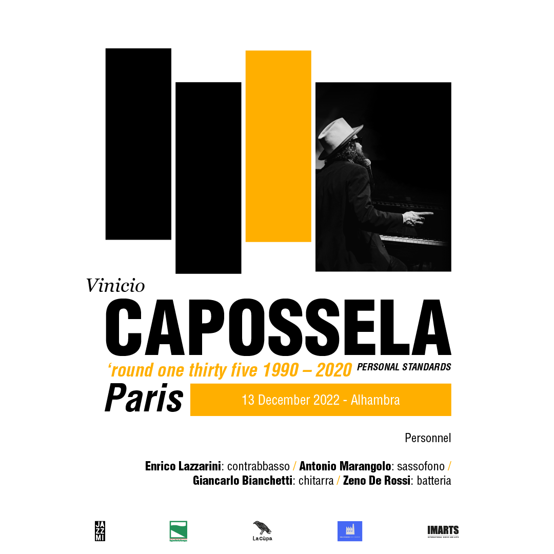 L'IMARTS - International Music and Arts è lieta di invitare i soci della CCI France Italie ad assistere al concerto di Vinicio Caposella insieme a ROUND ONE THIRTYFIVE martedì 13 Dicembre 2022 alle ore 19:30 presso Alhambra (Parigi).