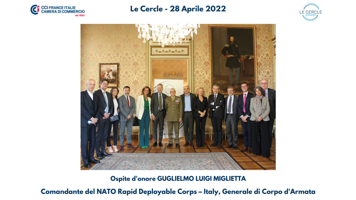 Guglielmo Luigi Miglietta, Commandant du NATO Rapid Deployable Corps – Italy, Général de Corps d’Armée est intervenu comme invité d’honneur à la dernière rencontre du Cercle d’Affaires de la Chambre qui a eu lieu le 28 avril au Palazzo Cusani, siège du Commandement Militaire Armée Lombardie et Représentation OTAN à Milan, sur le thème "La transformation de l’instrument militaire dans le cadre de la Défense Commune Européenne"