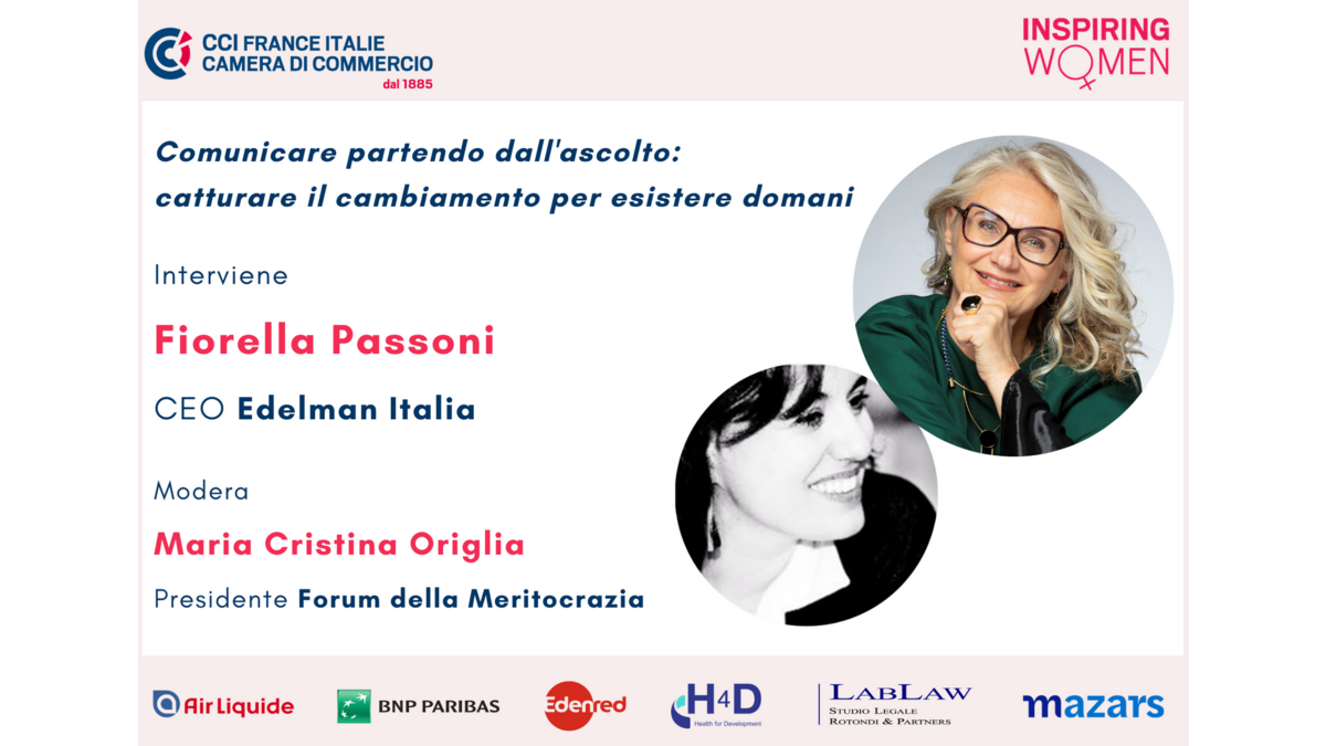 Nous en avons discuté avec Fiorella Passoni, CEO Edelman Italia en conversation avec Maria Cristina Origlia, Presidente Forum della Meritocrazia