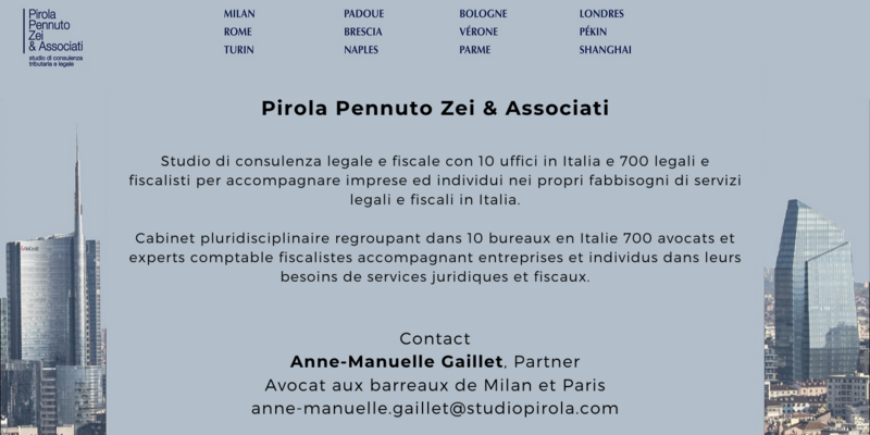 Avv. Anne-Manuelle Gaillet, Partner – anne-manuelle.gaillet@studiopirola.com