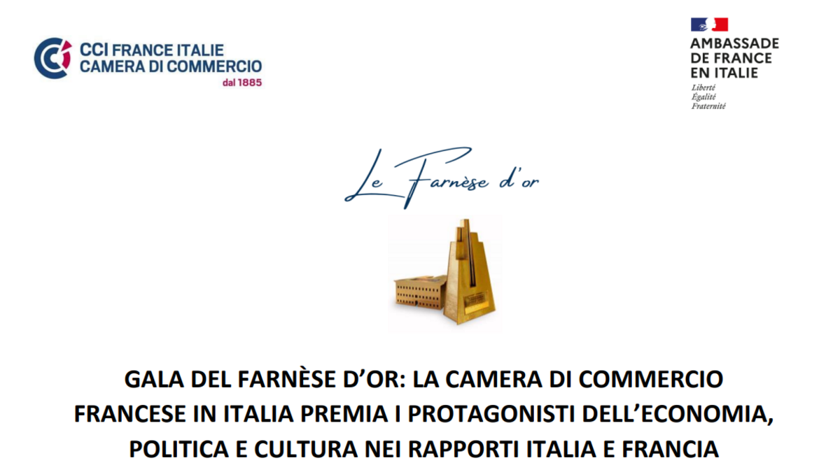 FARNESE D'OR: LA CHAMBRE DE COMMERCE FRANCAISE EN ITALIE RÉCOMPENSE LES PROTAGONISTES DE L’ÉCONOMIE, POLITIQUE ET CULTURE DANS LES RELATIONS ITALIE ET FRANCE
