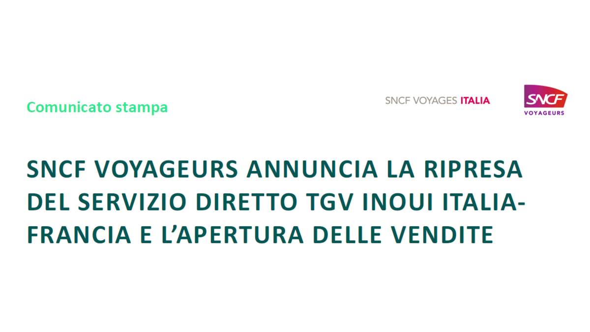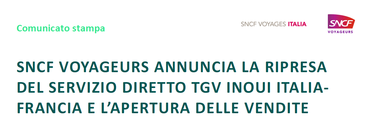 Reprise du service direct TGV INOUI Italie-France et ouverture des ventes