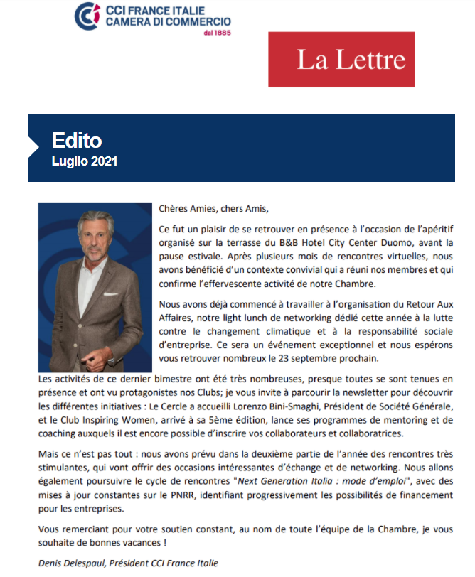 A l'occasion de son « Retour aux Affaires » le 23 septembre dernier, la CCI France Italie a réaffirmé son engagement en matière ESG