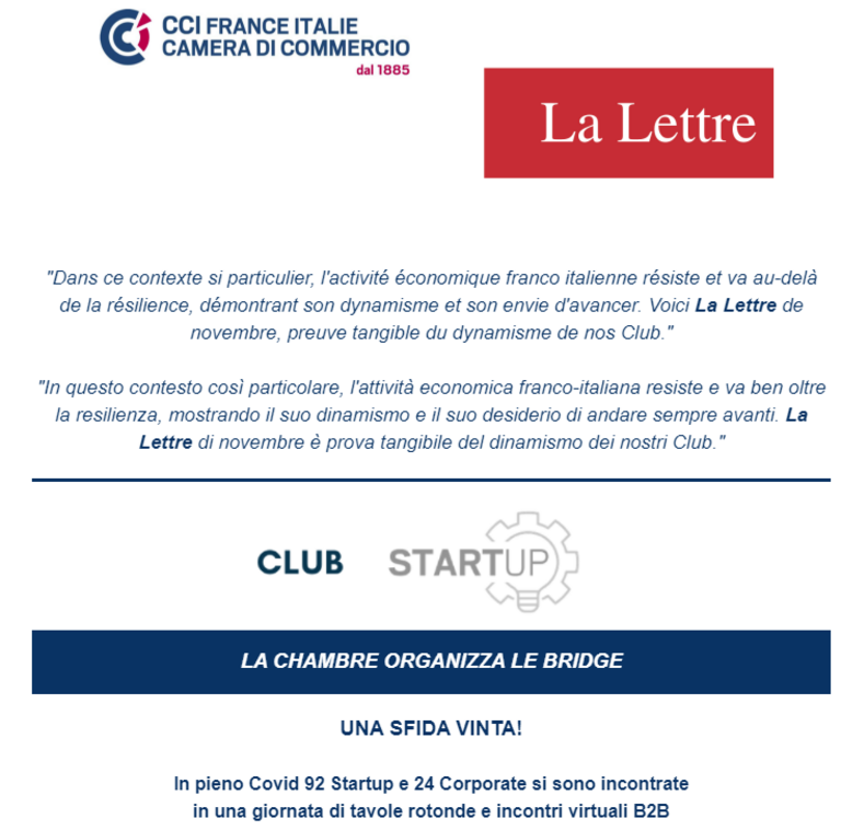 12 Novembre 2020 Un événement exceptionnel de la Chambre de Commerce française en Italie JOURNÉE B2B dédiée aux GRANDES ENTREPRISES et STARTUPS 215…