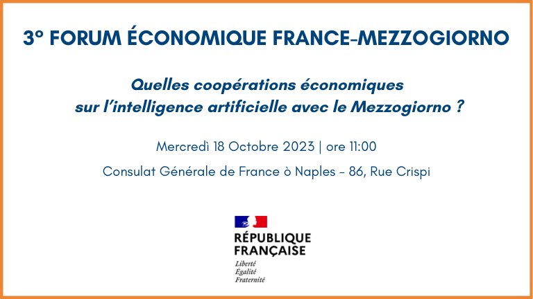 3° FORUM ECONOMICO FRANCIA-MEZZOGIORNO Mercredi 18 Octobre 2023 H11 Consulat Générale de France à Napoli - Via Crispi 86