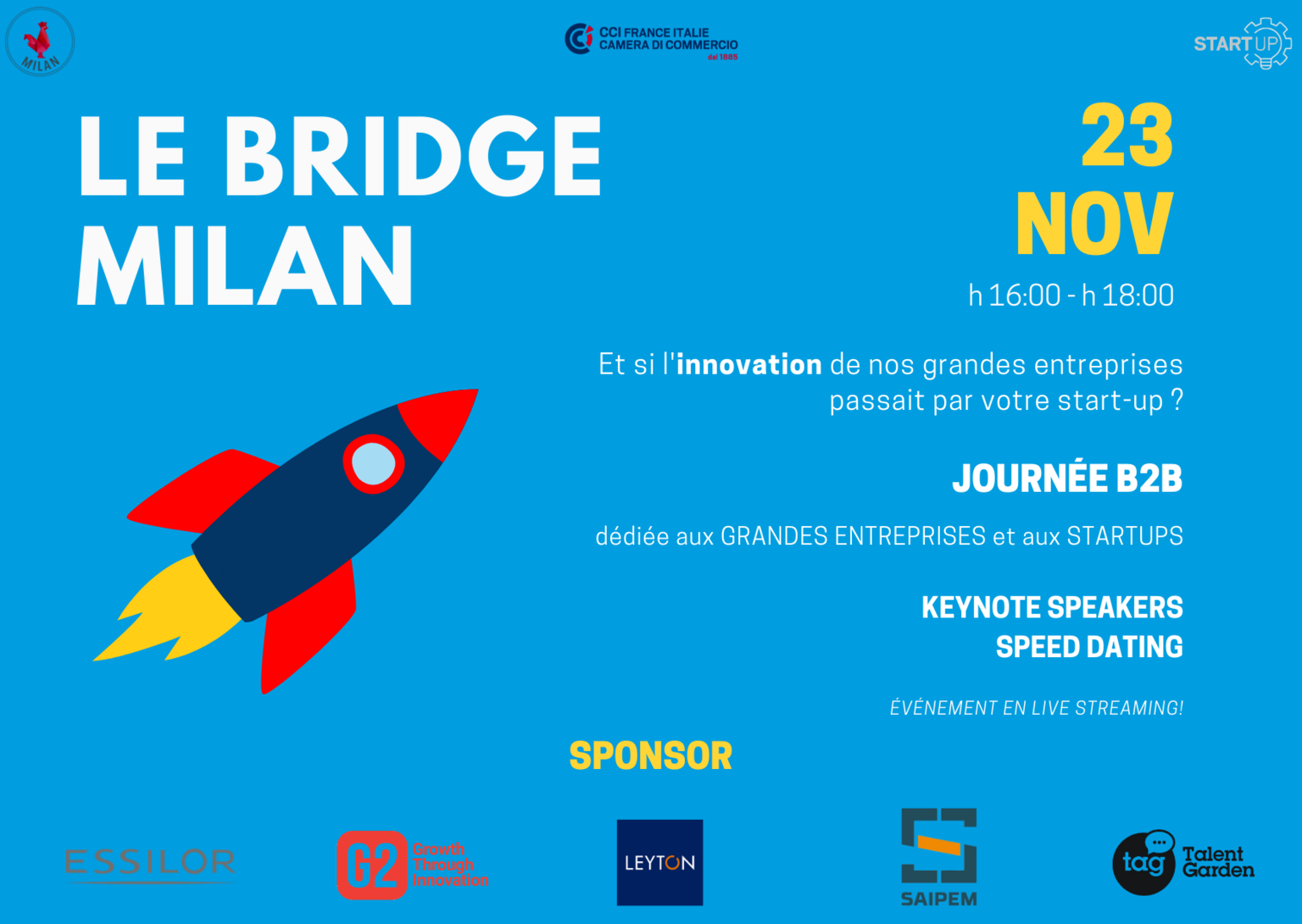 Une journée B2B dédiée aux grandes entreprises (Responsables Innovation, mais aussi Responsables Marketing, Finance, Achats, etc...) et startups italiennes et françaises sur le format du speed dating.