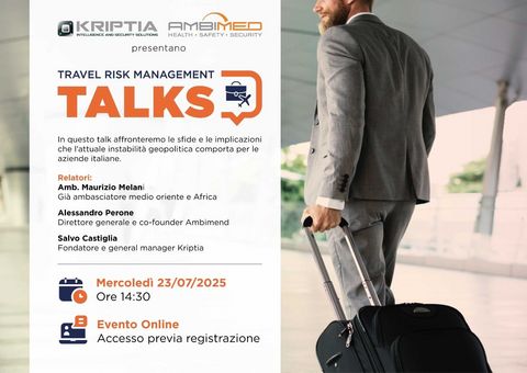 La participation est gratuite, mais l’inscription est requise via le formulaire en ligne disponible au lien suivant : TRAVEL RISK MANAGEMENT TALKS | Partecipazione alla riunione | Microsoft Teams